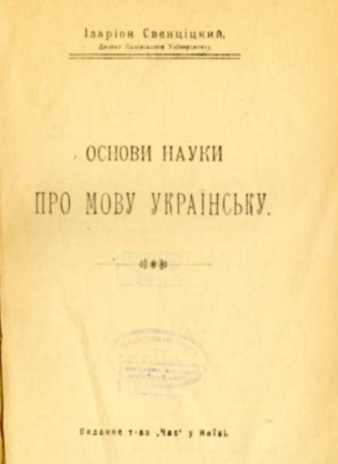 Свєнціцький І. Основи науки про мову українську (1917р.). Фото : вебсайт Львівська національна наукова бібліотека України ім. В. Стефаника