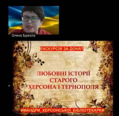 Цього разу провідна бібліотекарка відділу соціокультурної діяльності Олена Бджола запросила учасників онлайн-променаду дізнатися подробиці любовного та шлюбного життя історичних персон, пов'язаних з Херсоном і Тернополем.