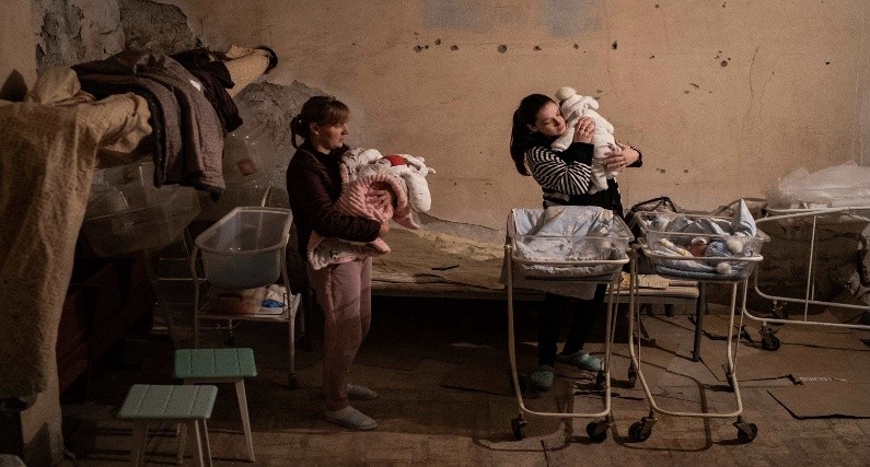 Матері з новонародженими під час повітряної тривоги у підвалі лікарні в Одесі, 17 березня 2022 року. Фото: The Washington Post