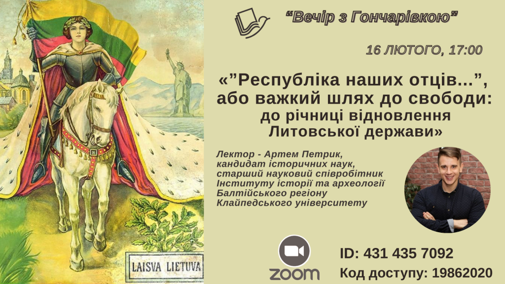 Запрошуємо вас долучитися до святкового заходу, який проведе кандидат історичних наук, старший науковий співробітник Інституту історії та археології Балтійського регіону Клайпедського університету Артем Петрик.