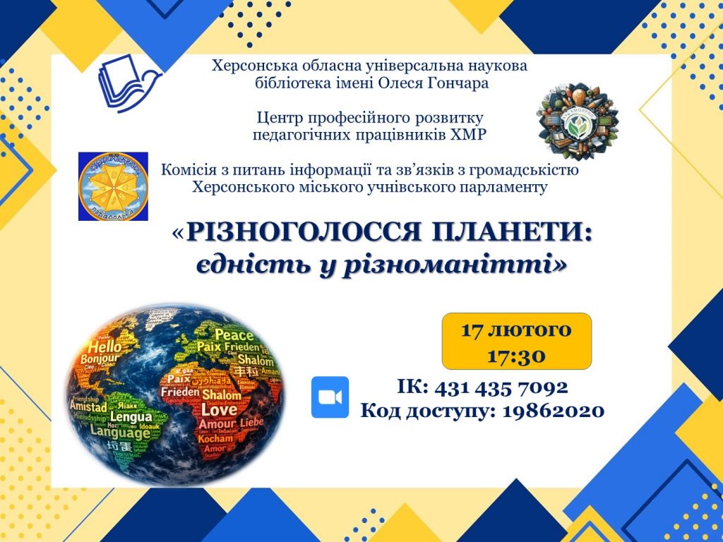 Запрошуємо вас на урочистий онлайн-захід «Різноголосся планети: єдність у різноманітті», присвячений Міжнародному дню рідної мови, започаткованому у 1999 році за ініціативи ЮНЕСКО.