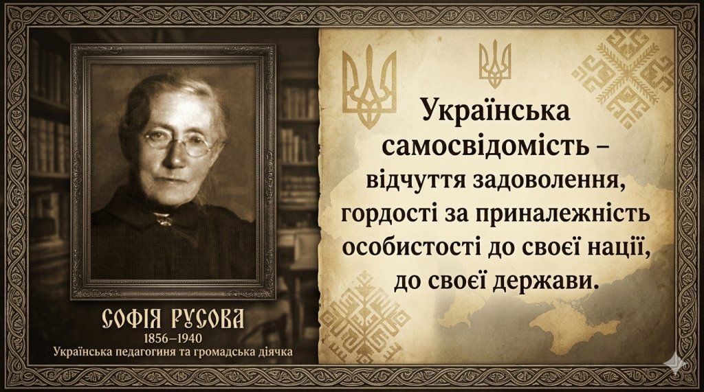 Віковічне ярмо поневолення, спотворення національного світогляду, відлучення від традицій, звичаїв, культури свого народу, тотальна русифікація російської імперії, потім – радянського союзу, загнали ім’я видатної української педагогині Софії Русової у безвість на довгий час. Через десятки років безцінні надбання цієї видатної жінки у галузі педагогіки, дошкільної освіти, літератури, культури, політології стали дороговказом єднання української нації.