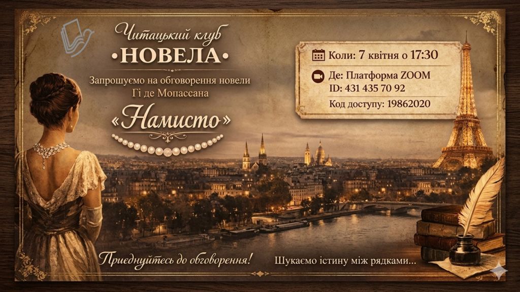 Друзі, запрошуємо вас на нову зустріч читацького клубу «Новела», де книги оживають у діалозі!