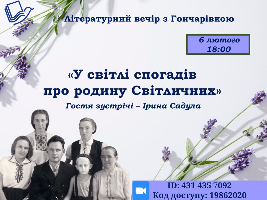 Запрошуємо поціновувачів української культури, літератури та родинної історії на особливу літературну онлайн-зустріч «У світлі спогадів про родину Світличних».