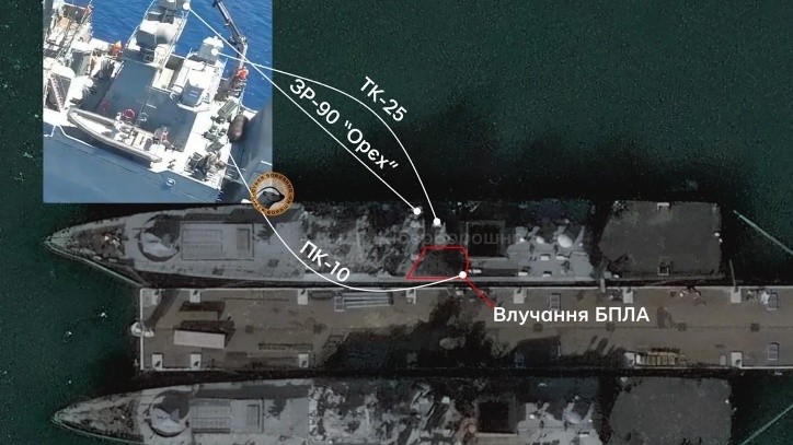 Супутниковий знімок наслідків удару по «Адміралу Ессену». Фото: Новинарня