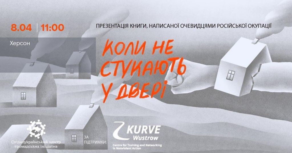 8 квітня об 11.00 в Херсоні відбудеться презентація книги «Коли не стукають у двері: 25 історій про російську окупацію». Вона створена з ініціативи ГО «Східноукраїнський центр громадських ініціатив» і містить 25 особистих історій українців, які діляться досвідом перебування в російській окупації чи її наближення. У виданні зібрано спогади жителів Запоріжжя, Київщини, Луганщини, Харківщини, Херсонщини і Чернігівщини, які охоплюють період із 2014 по 2022 рік. Очевидці подій написали свої історії самостійно й закарбували власні переживання про досвід життя в окупації, під обстрілами, втрати родичів, друзів чи рідного дому, евакуацію, страждання тварин, полон тощо. Драматичні історії різних за віком і родом занять цивільних українців дають зрозуміти, чому для цих людей є неприйнятним життя під владою росіян. Книга має на меті зберегти історію війни такою, як її бачать звичайні українці, та показати світу: чому ми не хочемо жити в російській окупації. Презентація відбудеться за участі авторів.