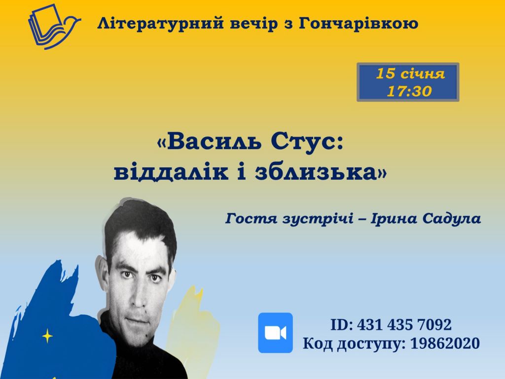 У межах проєкту «Літературні вечори з Гончарівкою» запрошуємо всіх шанувальників української літератури на онлайн-зустріч, присвячену постаті Василя Стуса – поета, мислителя й символа незламності українського духу.