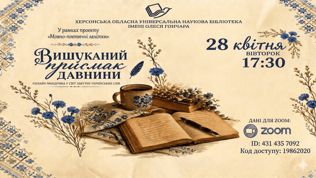 Уявіть вечір, наповнений легким шелестом давніх слів, теплом спогадів і музикою мови, яка зберегла у собі подих поколінь. Ми разом відкриємо словесну скриню, де живуть архаїзми, поетичні образи та мовні перлини, що колись були природною частиною щоденного життя.