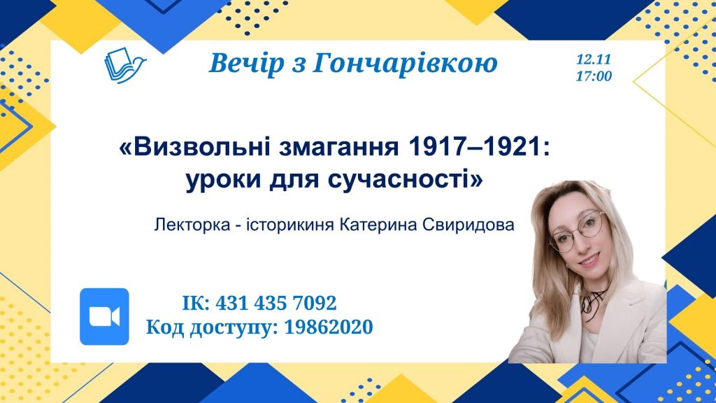Захід відбудеться в рамках культурно-просвітницького проєкту «Вечори історії з Гончарівкою».